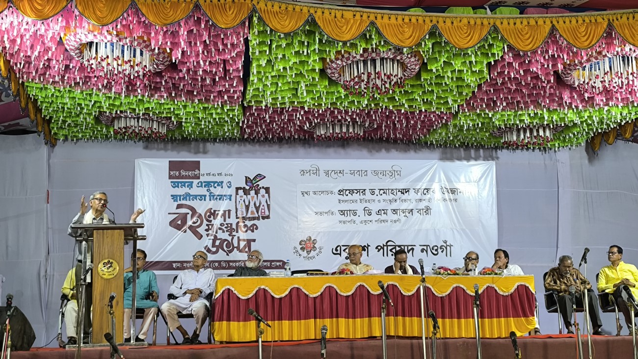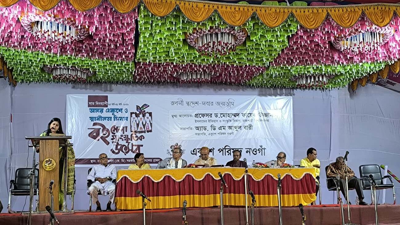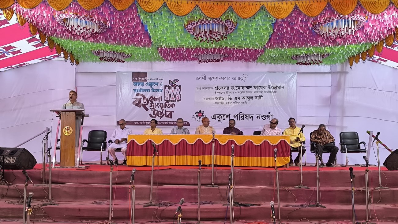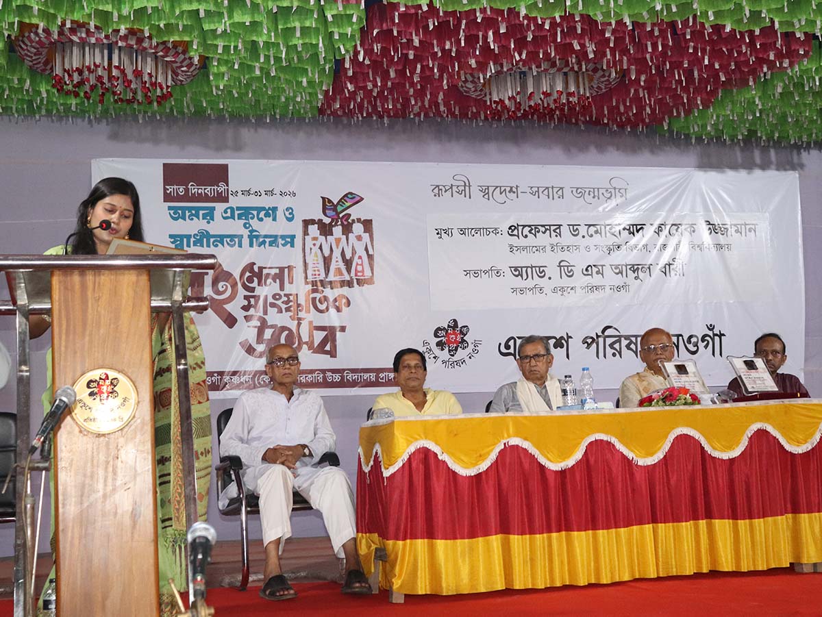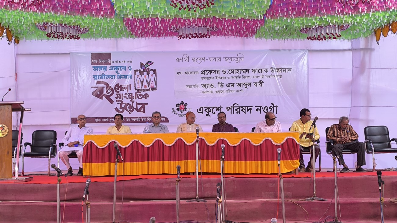On the occasion of Amar Ekushey and Independence Day, a seven-day book fair and cultural festival was organized by the Naogaon Ekushey Parishad. The closing ceremony of the festival was held on 31 March 2026 in a dignified and well-organized atmosphere at the premises of Naogaon Krishnadhan (K.D.) Government High School.